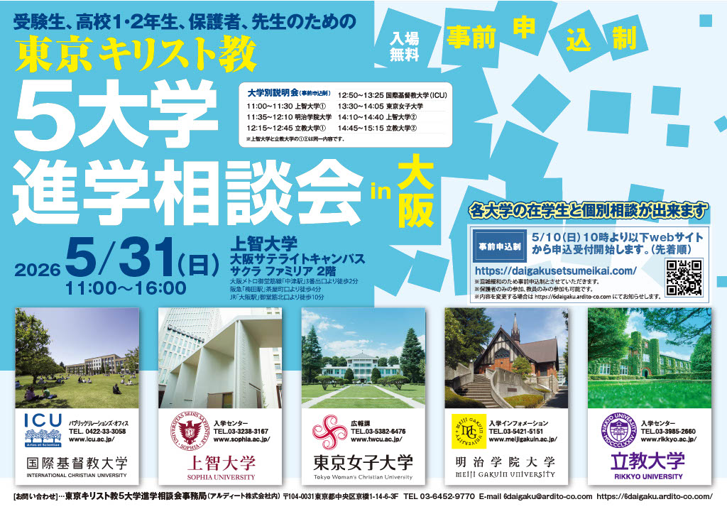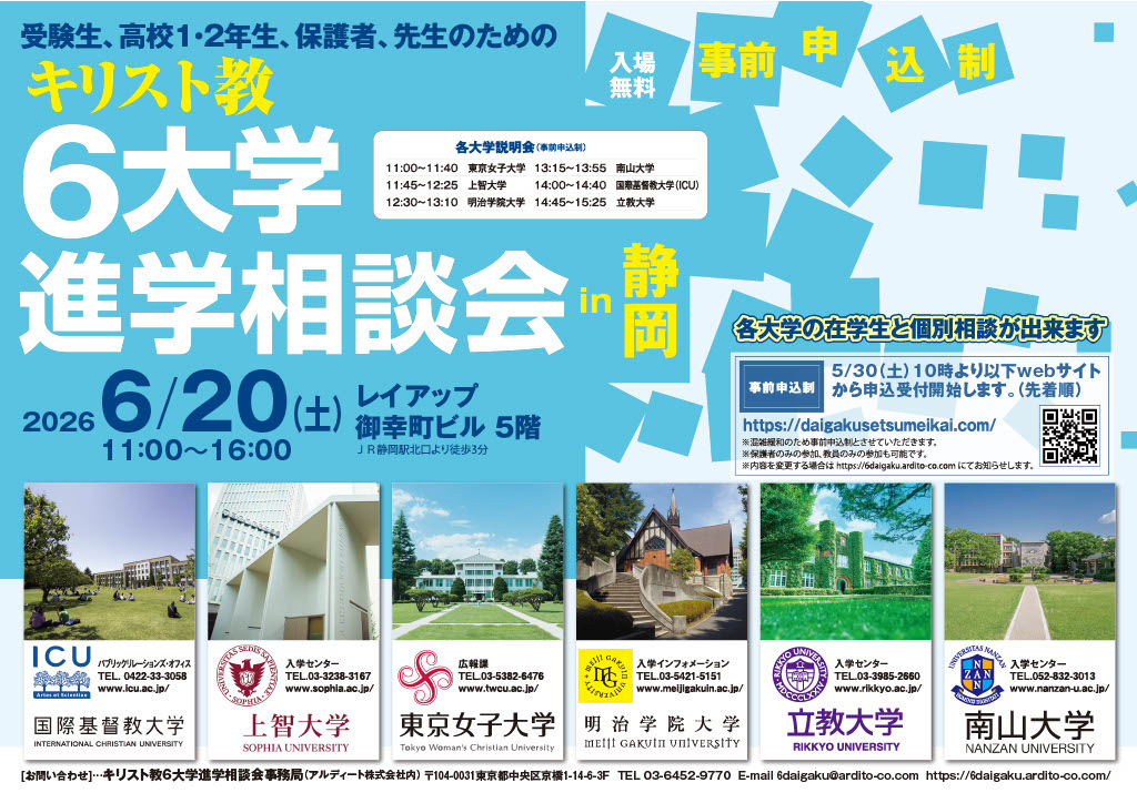 東京キリスト教6大学進学相談会事務局(アルディート株式会社内)TEL:03-6452-9770